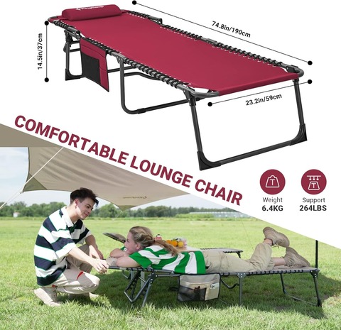 Silla de salón reclinable portátil ajustable de 5 posiciones para acampar de alta resistencia con almohada, chaise plegable, silla de salón, baño de sol