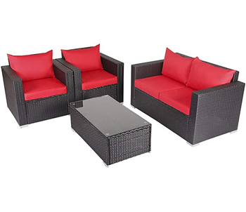 Açık veranda mobilya hasır hezaren kanepe seti kırmızı Modern bahçe mobilyaları lüks veranda koltuk takımı 4 kişilik hasır kanepe masa